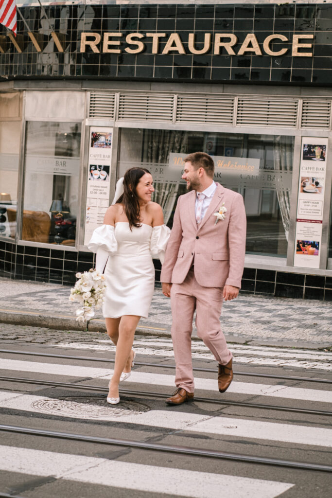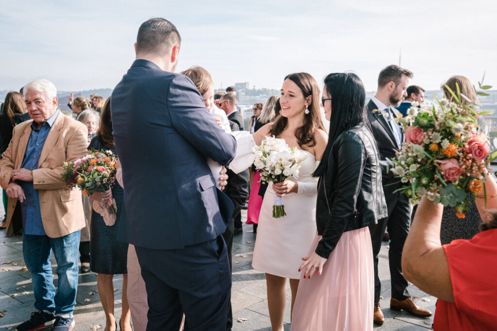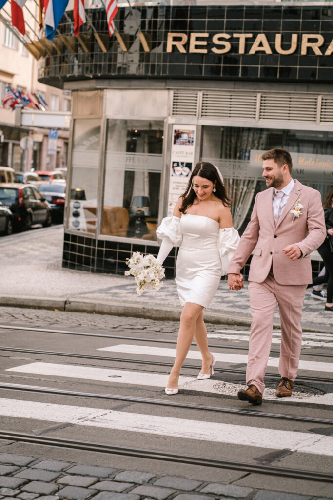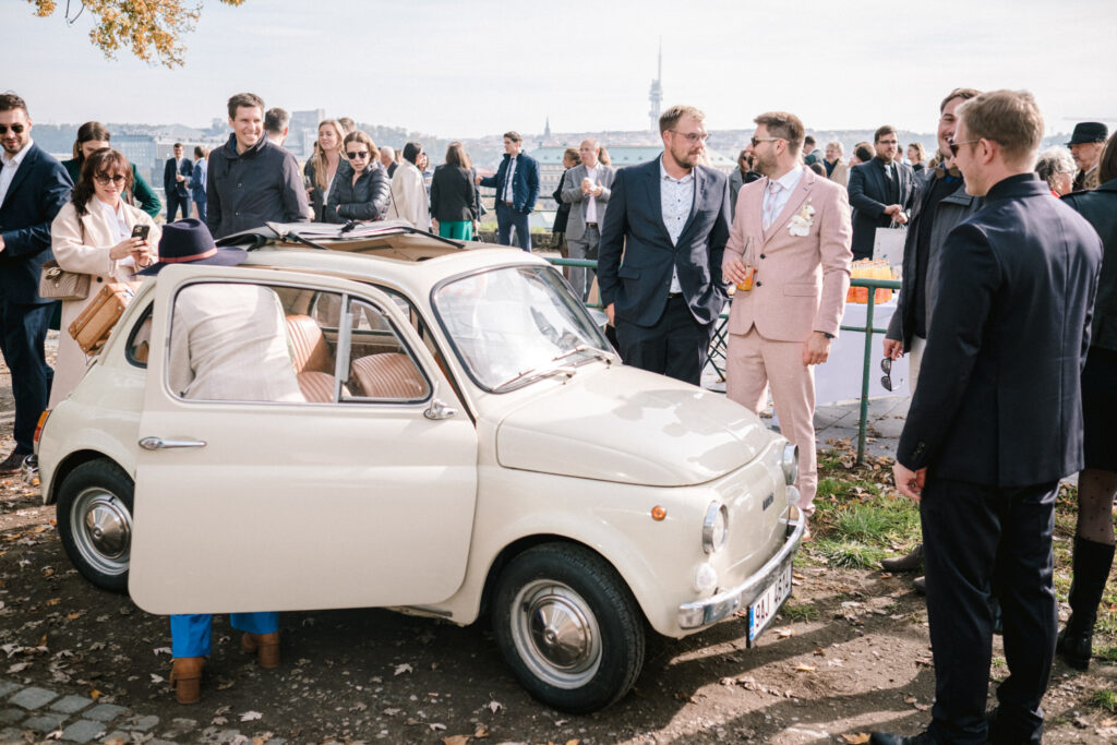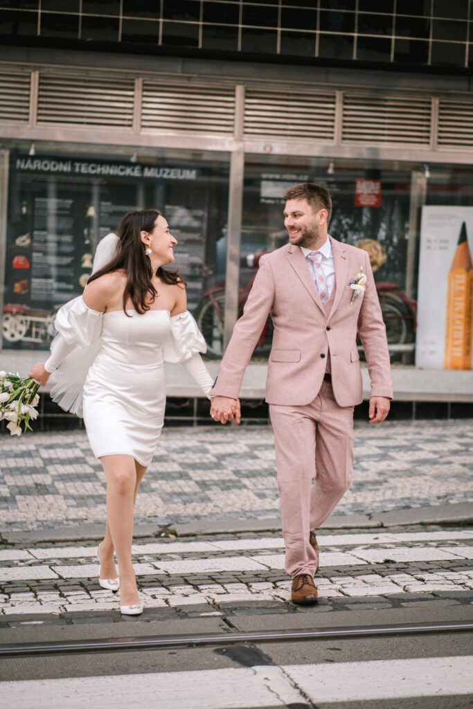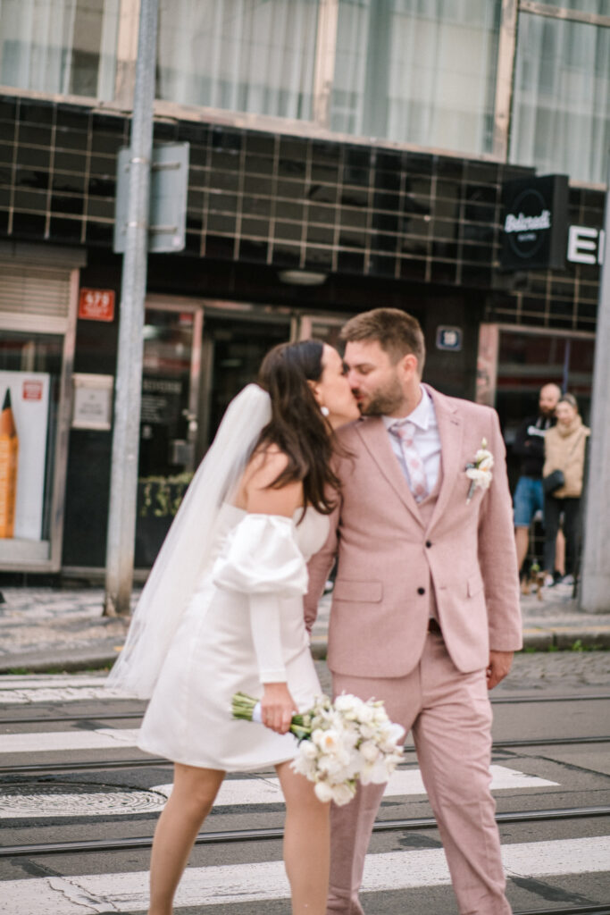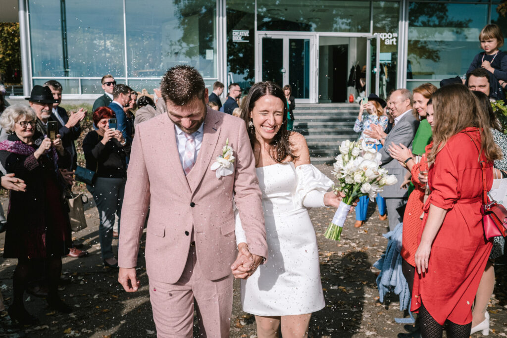 Svatební obřad se konal v prostorách výstavní síně EXPO 58 na Letné, což byla odvážná volba, ale naprosto geniální. Miluju umění a architekturu. takže z mého pohledu byla tahle lokace ideálním propojením minimalistického vizuálu a božský svatební atmosféry. Po obřadu jsme se rozhodli udělat si “rychlý oběd”, ale víte, jak to bývá – rychlý oběd ve městě se může rychle změnit na nezapomenutelné dobrodružství. Zastavili jsme se tedy v Mr. HotDog na jejich nejlepší hotdogy a nechali se unést chuťovými explozemi a příjemným rozhovorem.