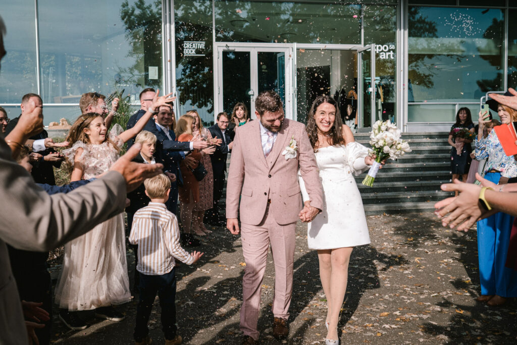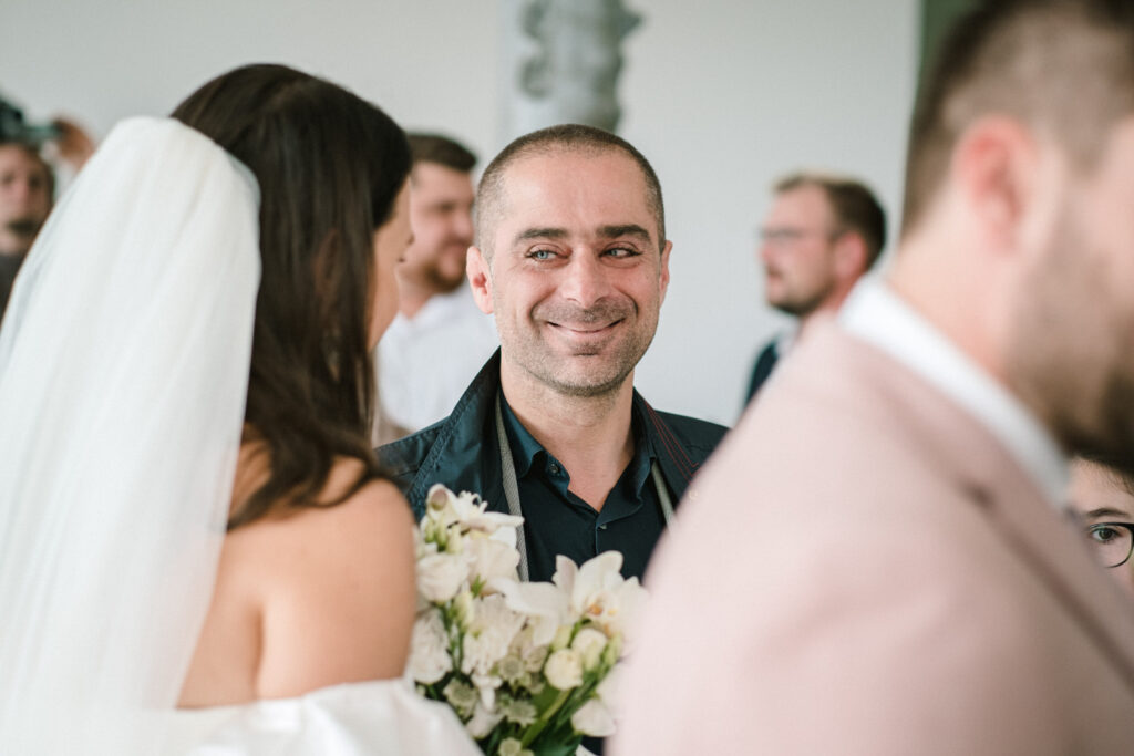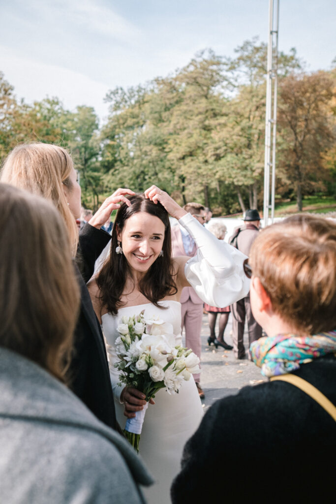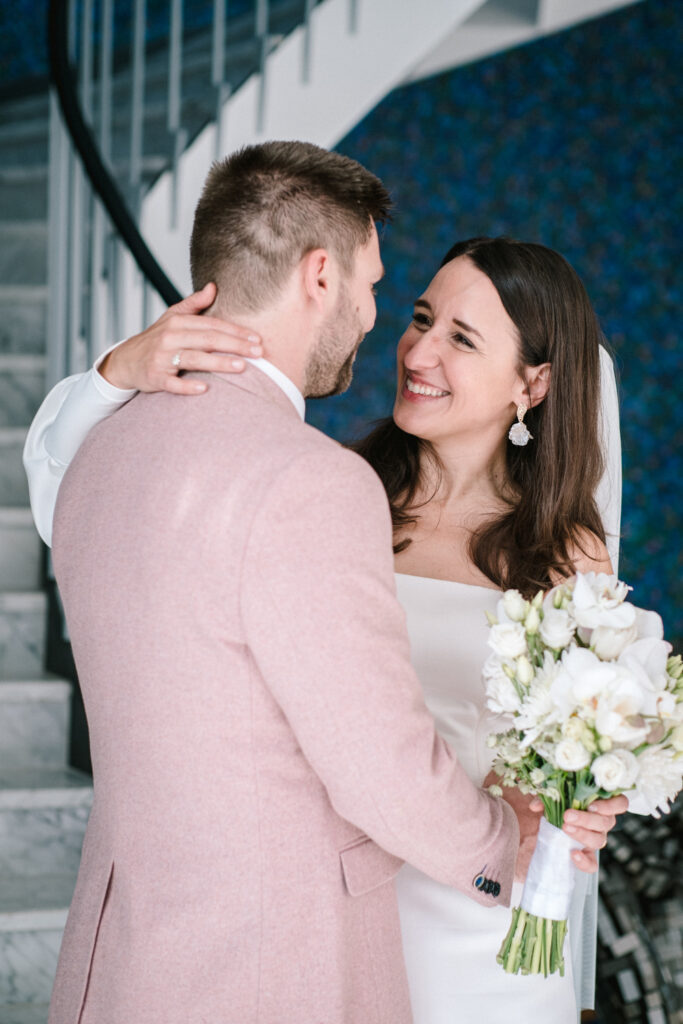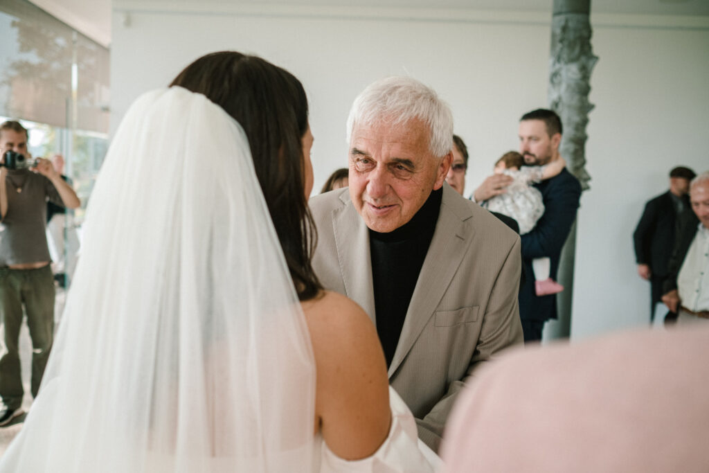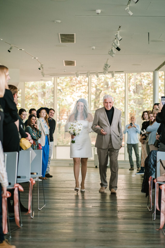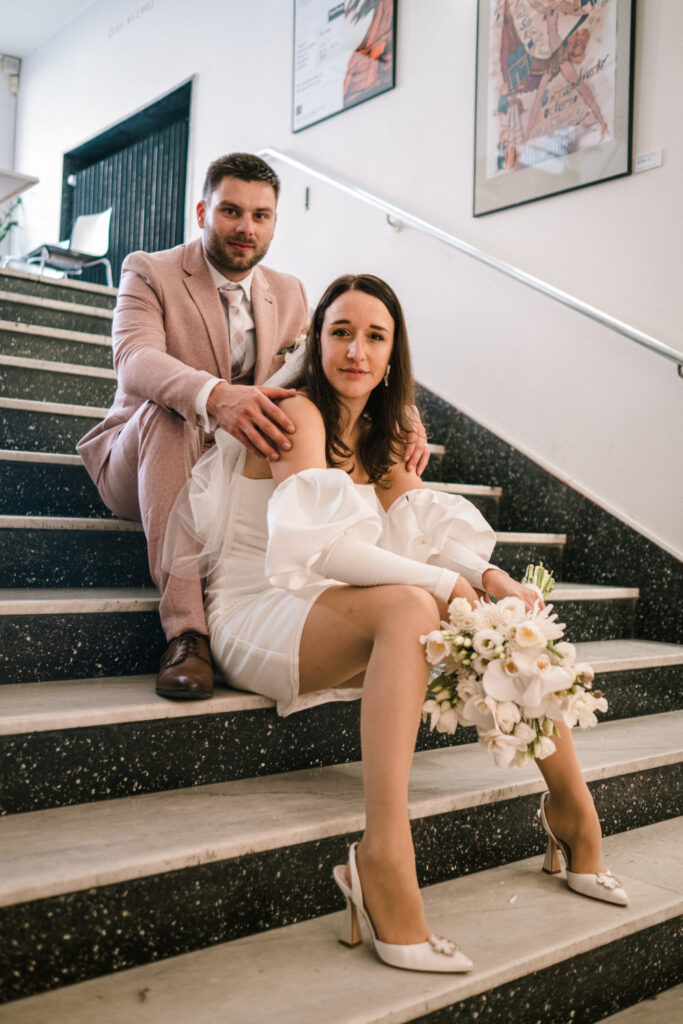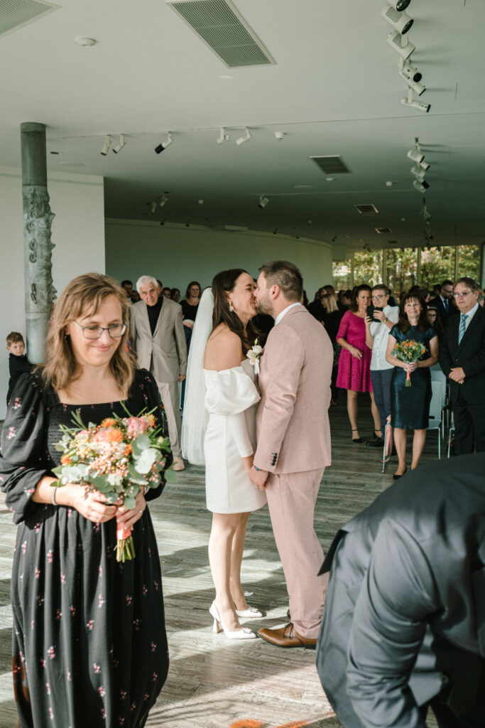Svatební obřad se konal v prostorách výstavní síně EXPO 58 na Letné, což byla odvážná volba, ale naprosto geniální. Miluju umění a architekturu. takže z mého pohledu byla tahle lokace ideálním propojením minimalistického vizuálu a božský svatební atmosféry. Po obřadu jsme se rozhodli udělat si “rychlý oběd”, ale víte, jak to bývá – rychlý oběd ve městě se může rychle změnit na nezapomenutelné dobrodružství. Zastavili jsme se tedy v Mr. HotDog na jejich nejlepší hotdogy a nechali se unést chuťovými explozemi a příjemným rozhovorem.