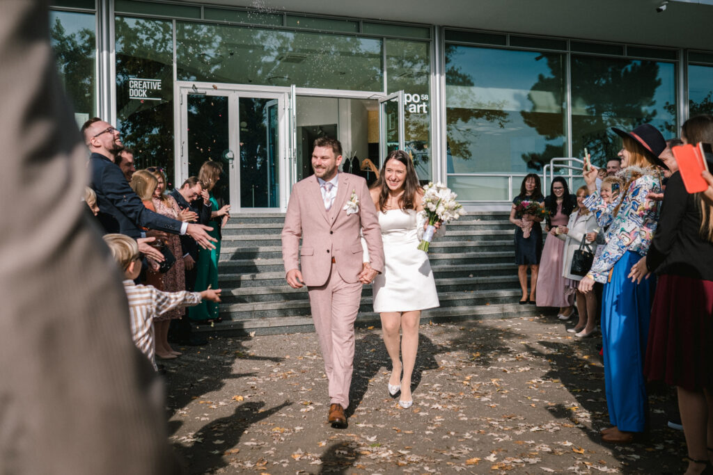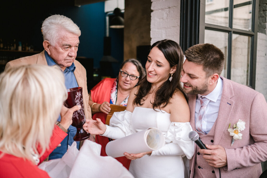 Svatební dobrodružství nabralo na obrátkách, když jsme se přesunuli do Holešovic do eventových prostor “město moře“. Tento název nejlépe popisuje, co nás čekalo – moře radosti, lásky a nezapomenutelných chvil. Raut plný lahodných pochoutek a devadesátkový dort byl tím nejlepším závěrem pro tuhle trochu punkovou svatbu. A co víc, být obklopeni rodinou a nejbližšími přáteli dělalo tento den ještě výjimečnějším.